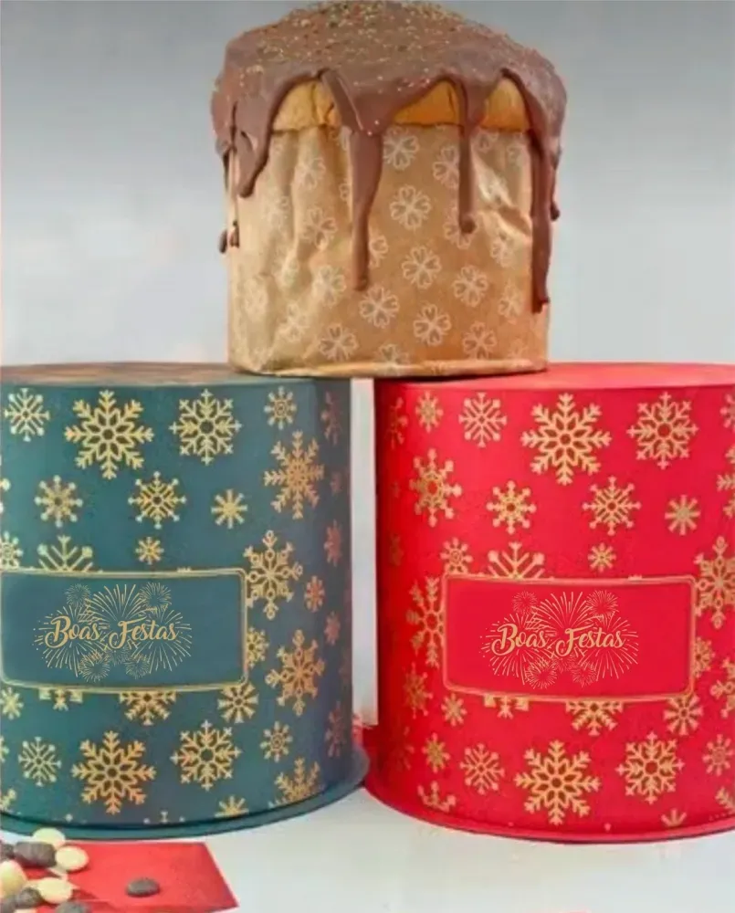 Redonda Cartonada Diam. 17,0 x 20,0 altura (Panetone Invertido ) - Com personalização Boas Festas