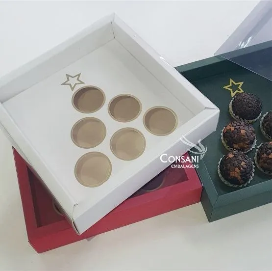 Gaveta Dobradura C/ berço Árvore de Natal 6 doces - Tampa Transp. e Fundo Simples