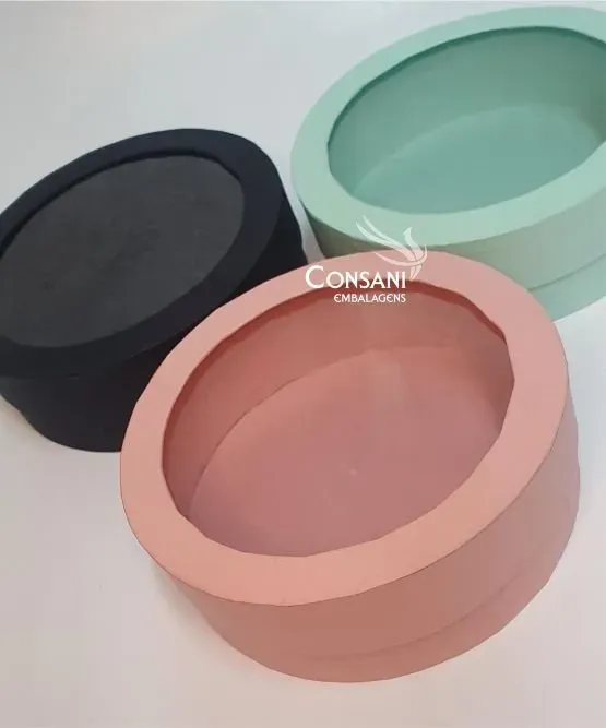 Modelo:  cartonagem redonda com visor na tampa